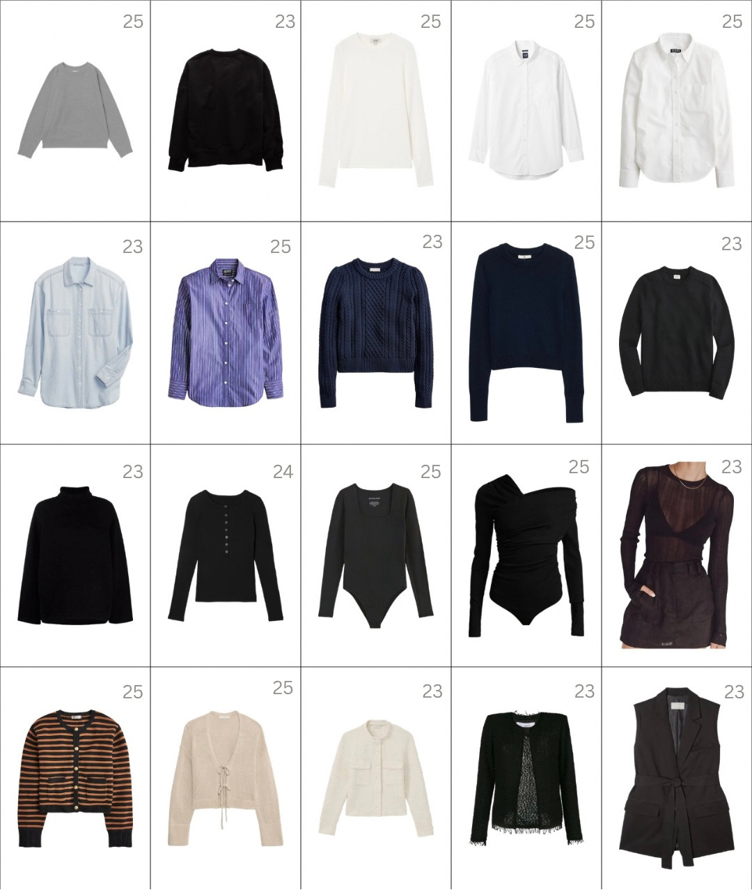 I ended the year having made 47 clothing purchases, and today only 29 of those still remain in my closet. Below, they are marked with a “23”. Here is what I learned from the items that did not survive: