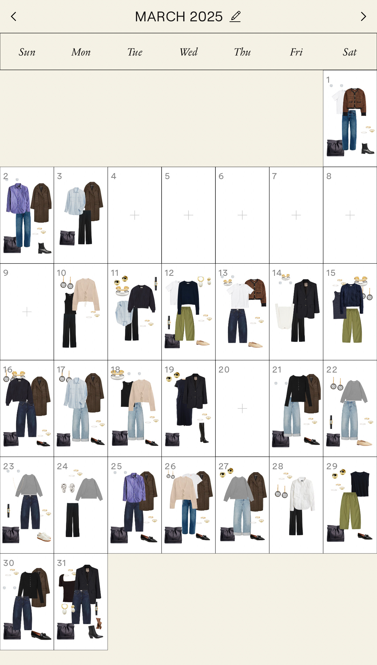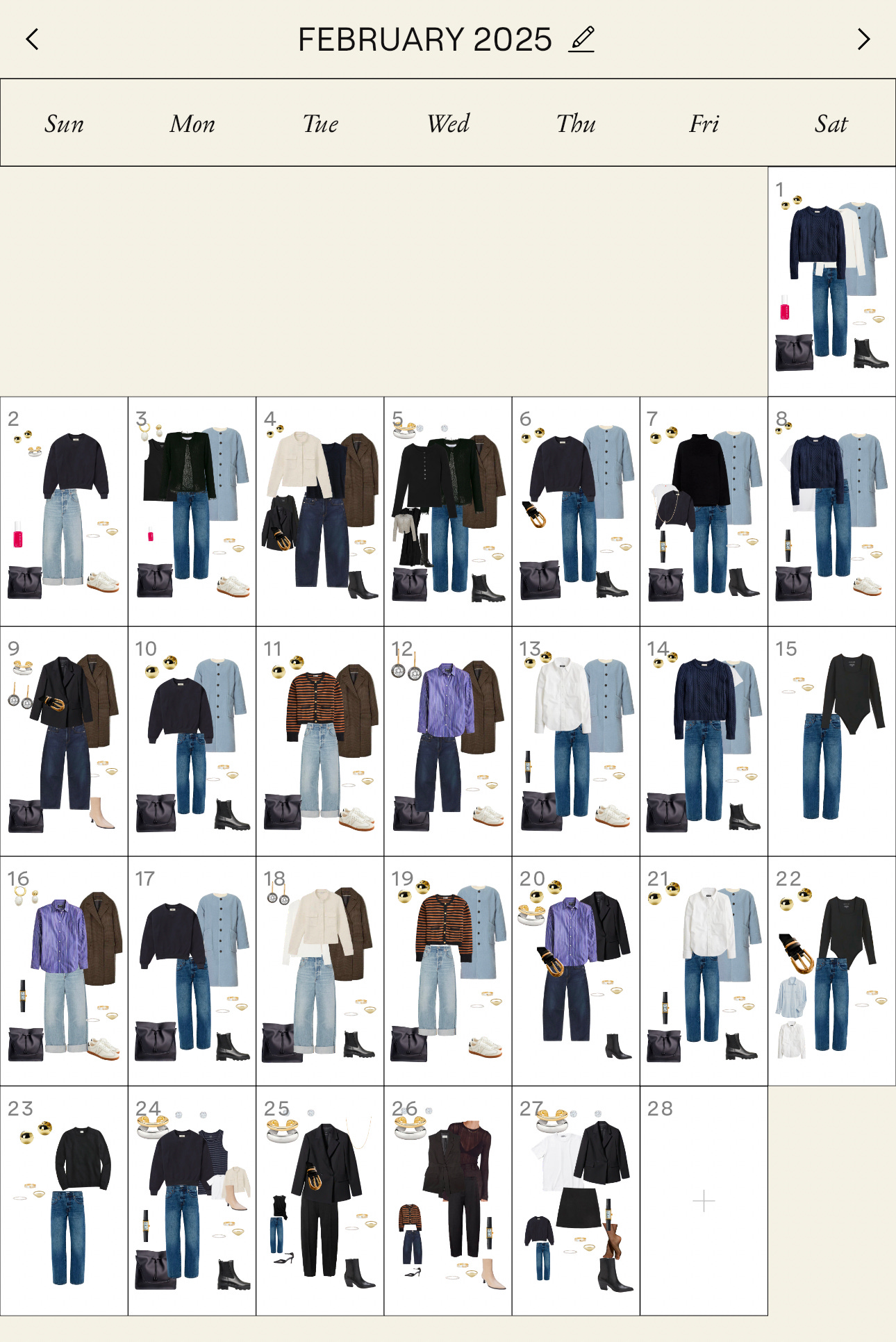 I’m not sure how helpful these screenshots are, but if you have Indyx, you can view my items and outfits in more detail here if you want! I only started logging my outfits in January but it’s quickly become one of my favorite daily rituals. I can assure you, with my closest at its current size/assortment, I am NEVER bored and NEVER feel like I don’t have anything to wear. I feel like I’ve hit a sweet spot where I have fun with my clothes, but I’m not overwhelmed by my closet and I don’t have things that I never feel like wearing.
