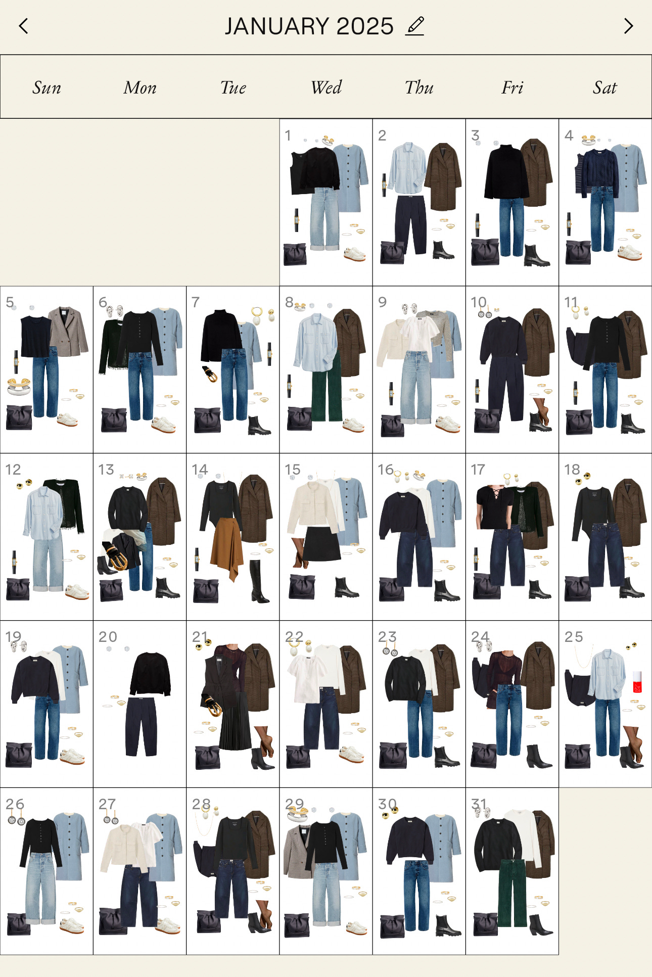 This was the year I slowed down, and did Rule of Five. Everything from this year is marked “24” below. This year was spent reflecting on 2023 and the lessons I learned there, with a lot of time and energy spent figuring out my style. I bought five new things and still love them all, but I did end up selling one of the two secondhand purchases I made because I apparently I needed to re-learn my “no ruffles” lesson from 2023.